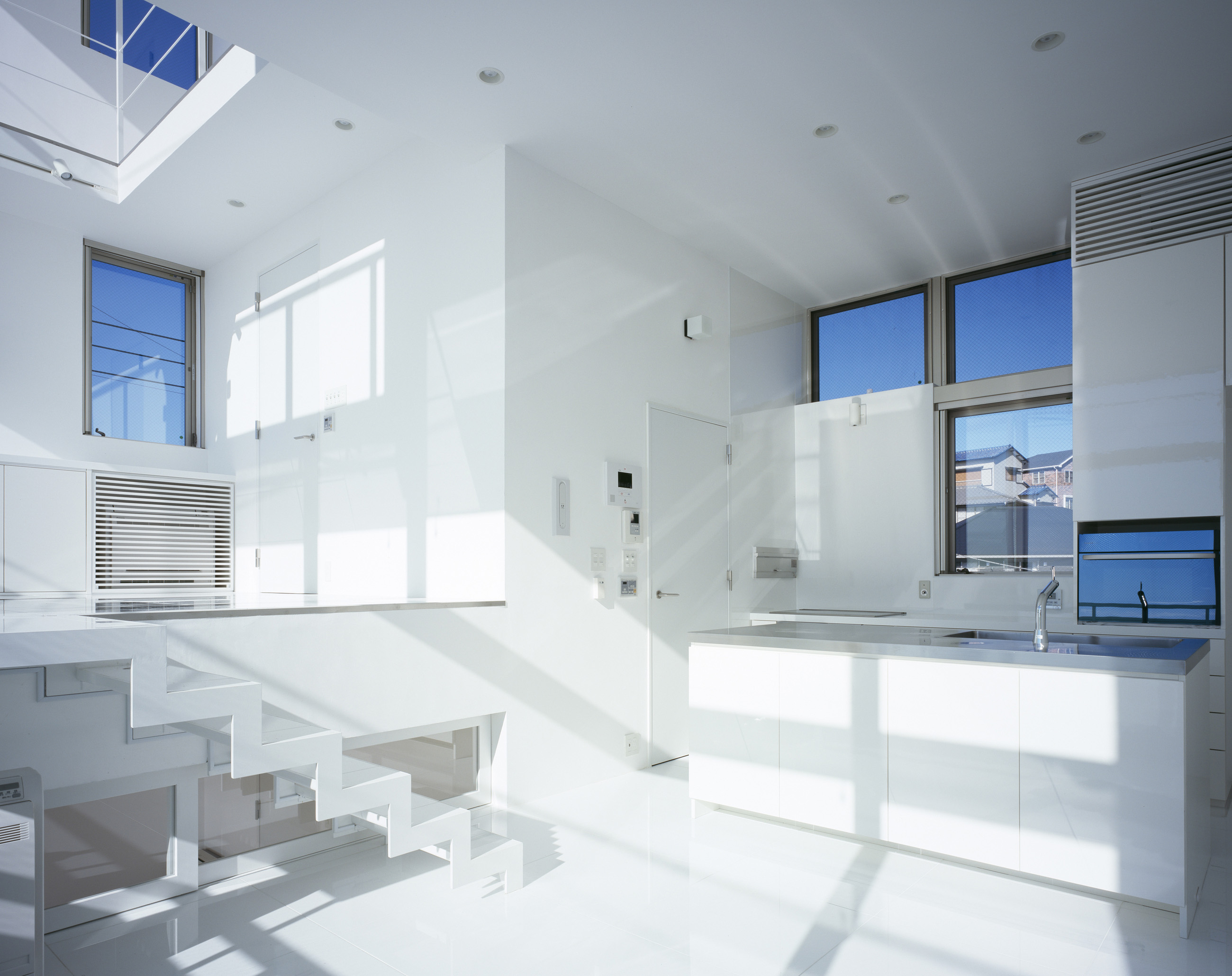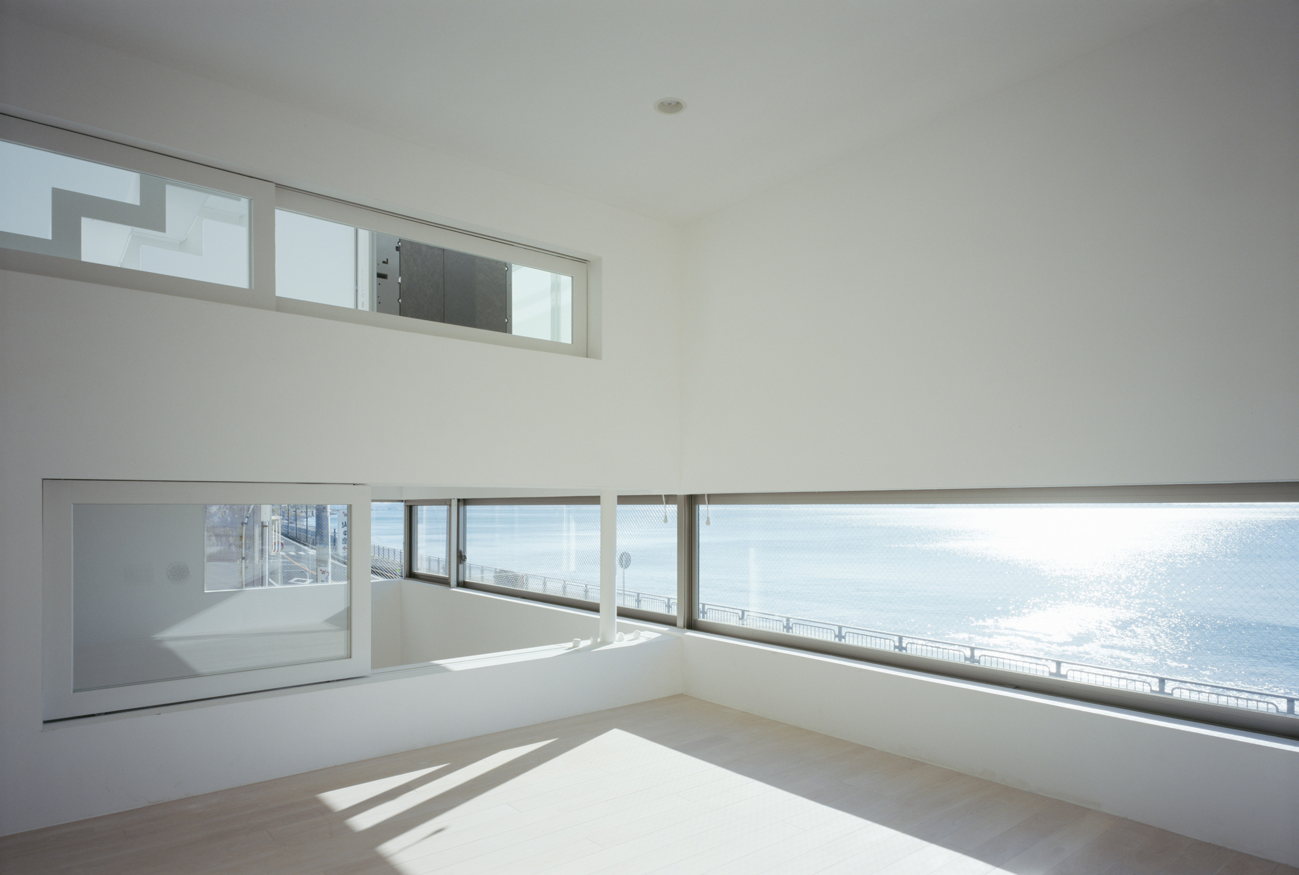Maximum number of openings is arranged to the street side facing the ocean in order for every room to secure the spectacular view of the ocean. In contrast to the openings of the bedroom and the entrance, the superb vistas plunge into the living room and the dinning kitchen consisted of skip floors and a colonnade through picture windows everywhere.