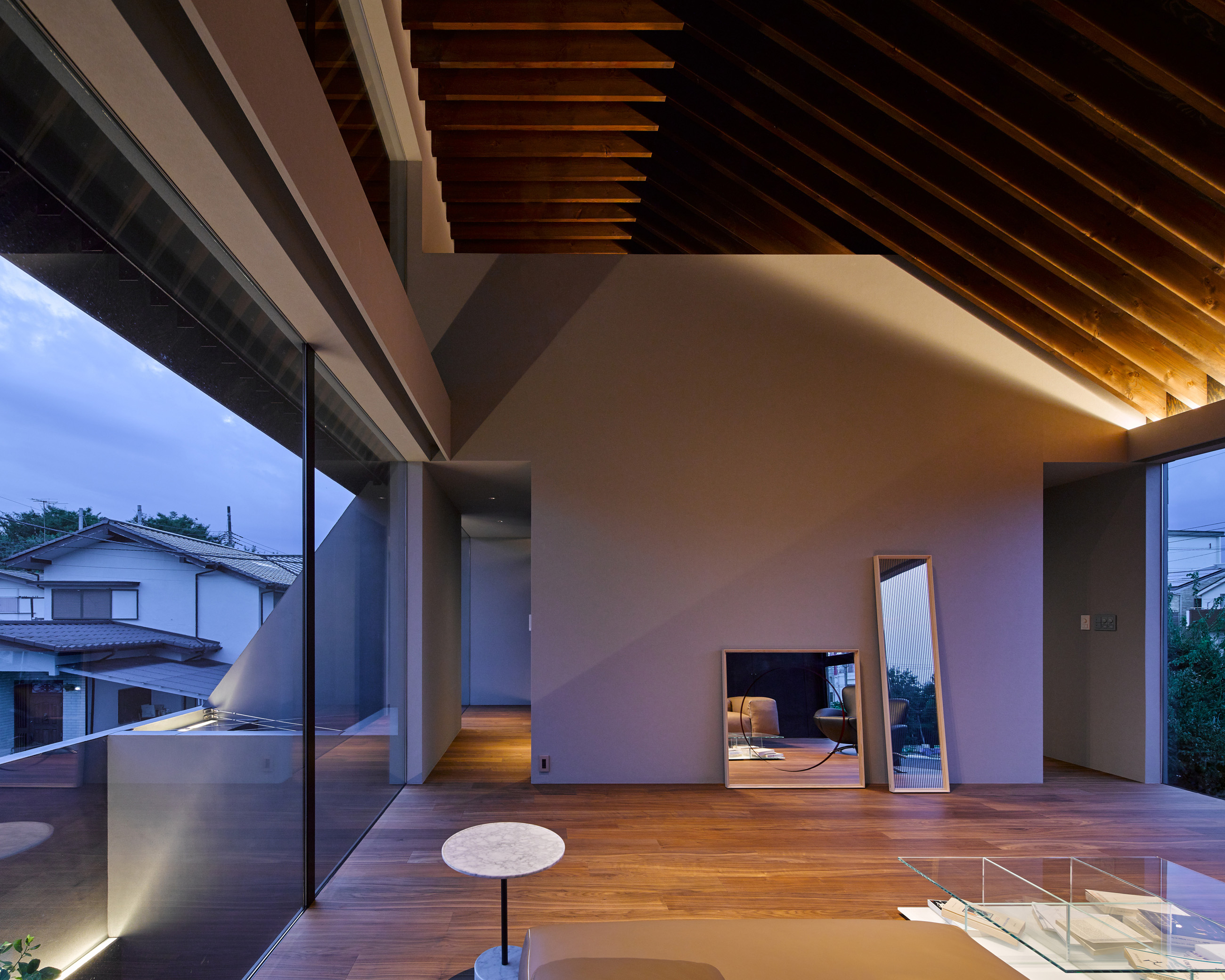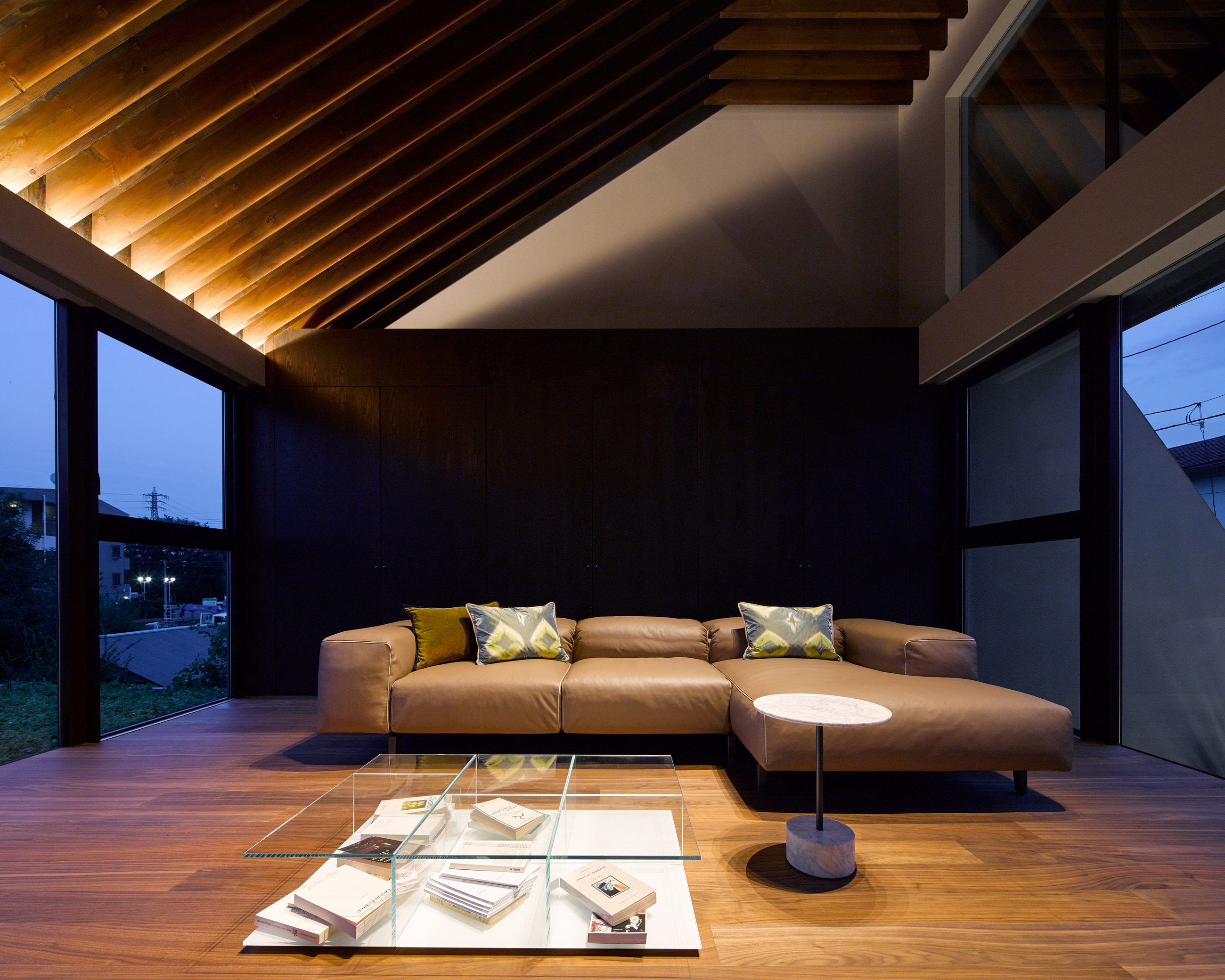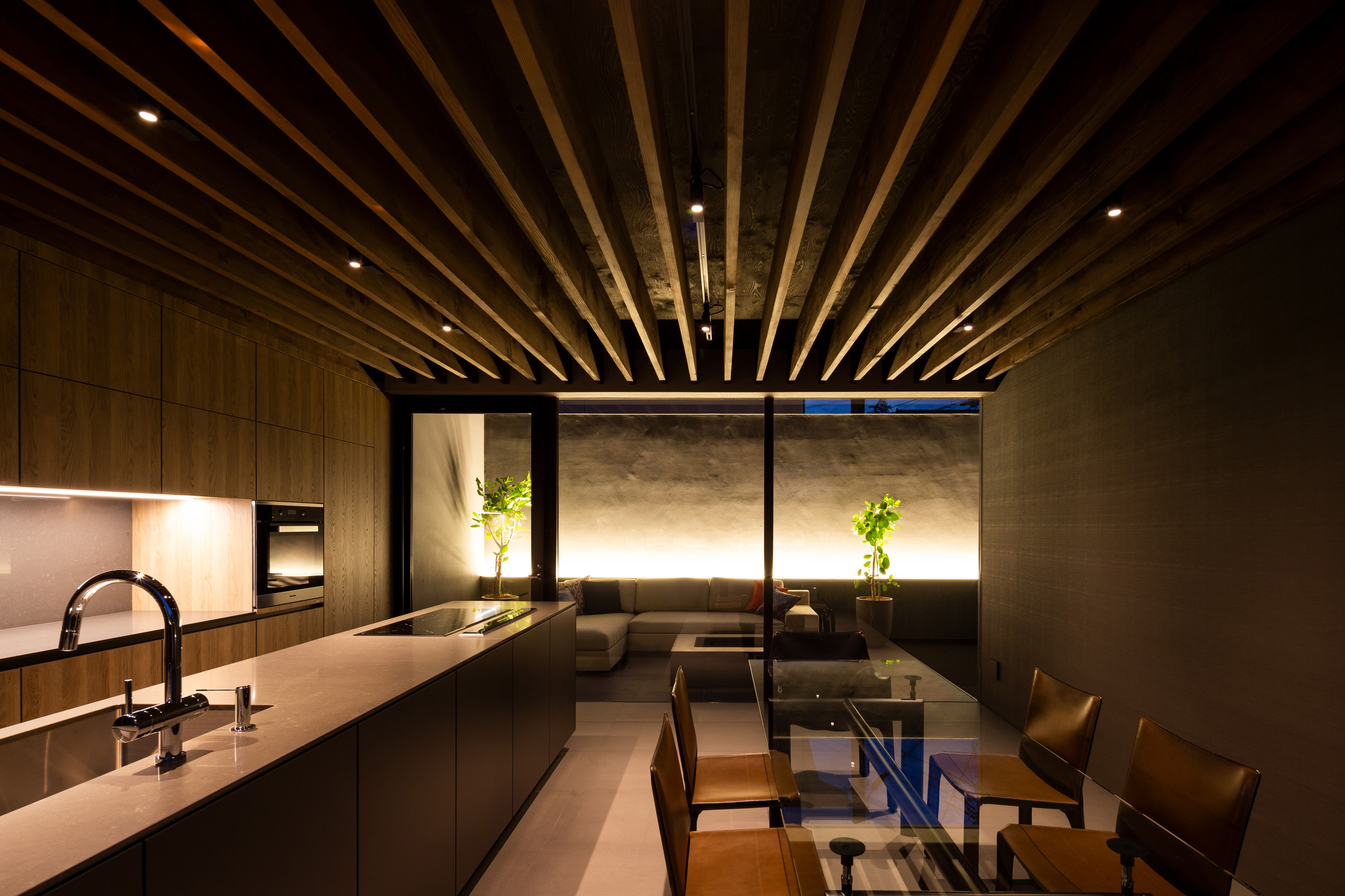 Location Fuchu city, Tokyo Completion 2018.8 Site Area 190.01㎡ Building Area 57.01㎡ 1F floor area 50.78㎡ 2F floor area 50.78㎡ Total floor area 101.56㎡ Structure Timber Scale 2 storey Typology Private housing Structure engineers Masaki Structures Kenta Masaki Lighting engineer Sirius lighting office Hirohito Totsune Kitchen design SieMatic Interior coordination Cassina ixc. Construction Hirano Construction Photographer Masao Nishikawa -