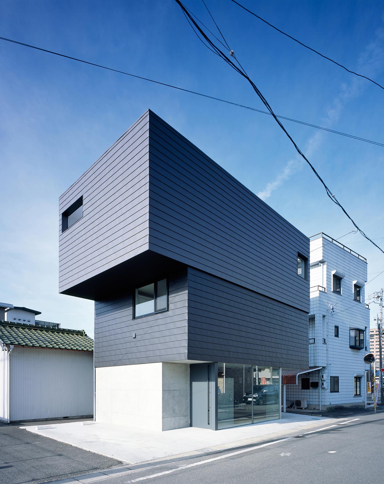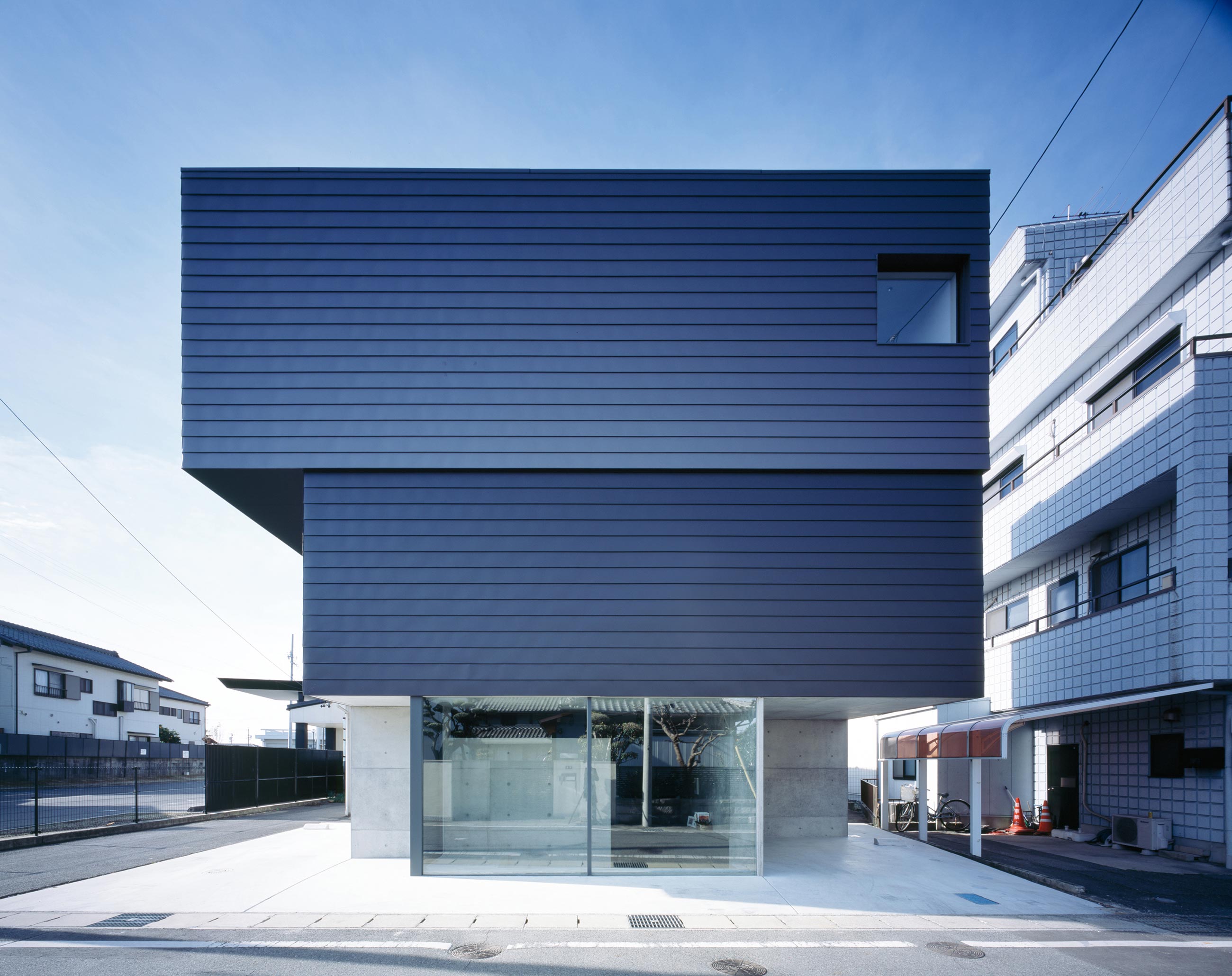 This residential project located in Obu city, Aichi prefecture, serves also as a gallery space for the contemporary art collection of the client. This building consists of a hybrid structure, with a podium on the 1st floor level composed of reinforced concrete and glazing, and wooden boxes configured in two floor levels and placed on top of the podium. Floor area becomes larger as it goes up in higher levels. With the box on the 1st floor level in glazing, and the other boxes for 2nd and 3rd floor levels in galvanized steel siding representing different color from the 1st level, the building provides a distinct character from its proportion with a sense of floating in the space.