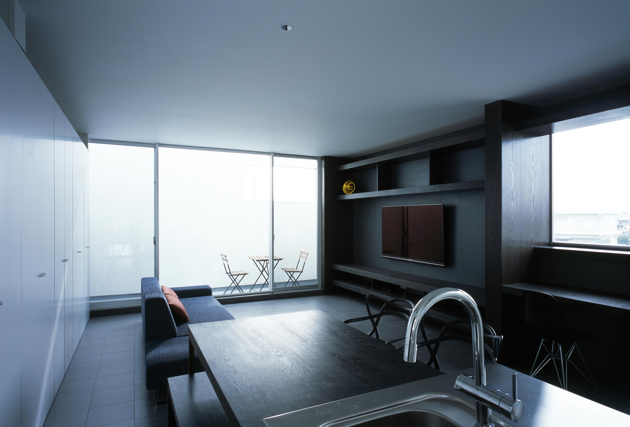 The interior finish and furniture of the family room is intentionally given monotonous colors with the utmost simplicity, allowing this space to be converted from the living space into alternative gallery space in the future to exhibit the art collection of the client. It will be a viewing room, for living together with art without loosing sense of privacy, by making good use of inner balcony and other elements for fully reducing openings of the building directly connecting to the outside.