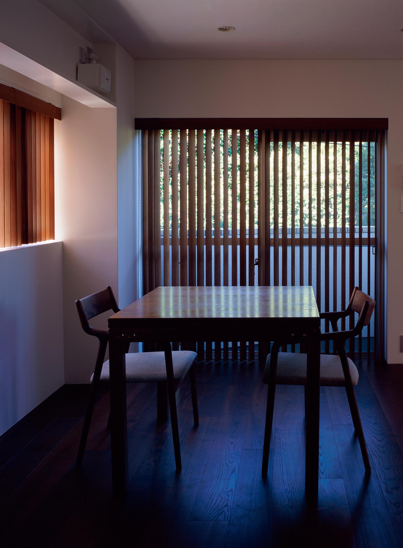 所在地 東京都渋谷区千駄ヶ谷 竣工 2006年11月 延床面積 86.70㎡(26.22坪) 用途 専用住宅 設備設計 シマダ設計 島田善衛 施工 滝新 建築写真 西川公朗 建築企画 OZONE