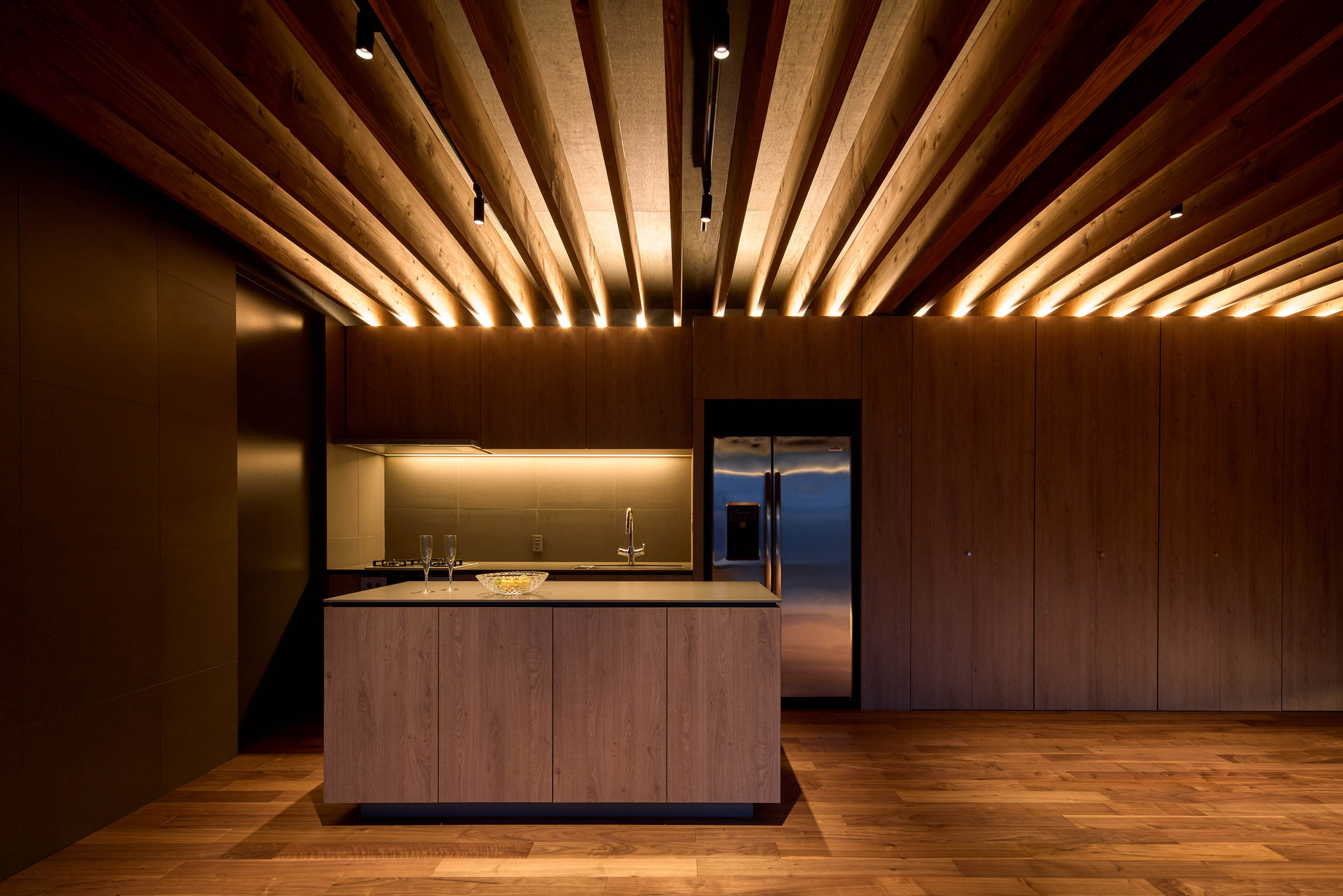Location Kanto area Completion 2020.12 Site Area 421.21㎡ Building Area 186.74㎡ 1F floor area 165.19㎡ 2F floor area 154.75㎡ Total floor area 319.94㎡ Structure Timber Scale 2F Structure engineer Masaki Structure Kenta Masaki Lighting engineer Sirius lighting office Hirohito Totsune Contructor Kobo Co., Ltd. Photographer Masao Nishikawa -