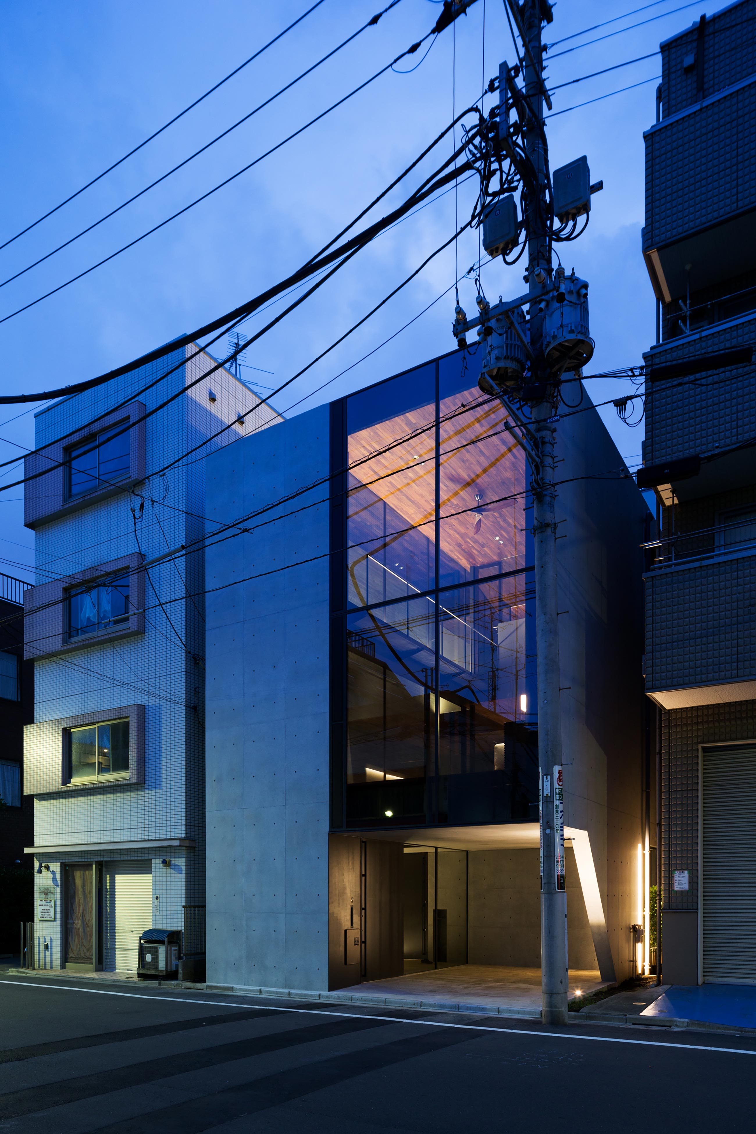 Location Sumida ward Tokyo Completion 2017.08 Site Area 89.30㎡ 1F floor area 61.11㎡ 2F floor area 48.90㎡ 3F floor area 33.95㎡ Total floor area 143.95㎡ Structure RC Scale 3F Structure engineers Masaki structure laboratory Kenta Masaki Construction Shinosaki Building contractor`s office Photographer Masao Nishikawa -