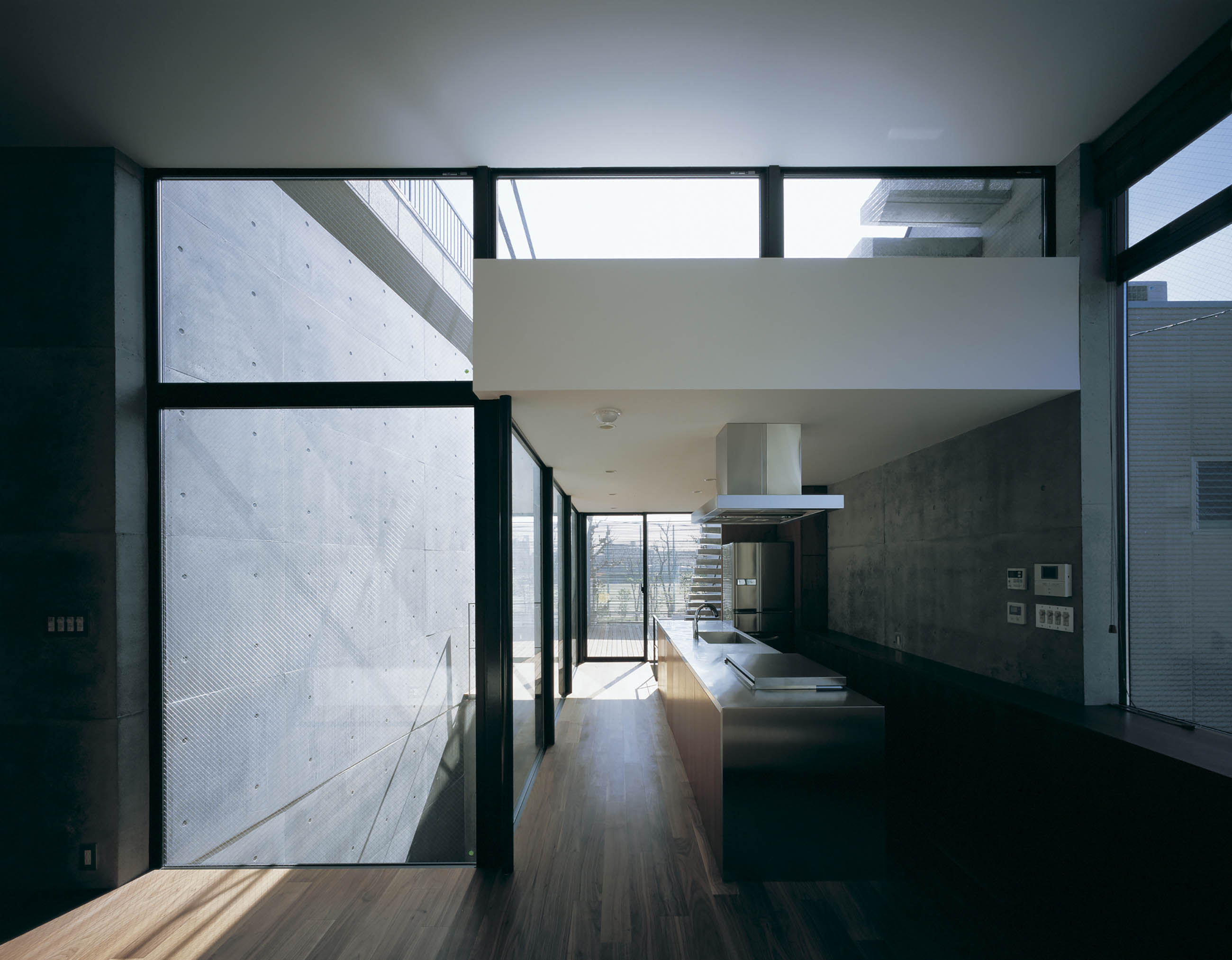 The exterior monotone vision consisting of fireproof side-louvers and concretes makes it unimaginable to perceive the interior.